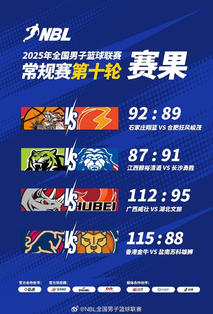 【战报】2025年NBL常规赛第十轮今日战罢。