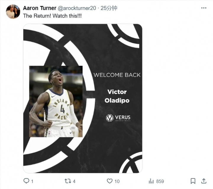 09月29日讯 库明加经纪人阿隆-特纳25分钟之前更新了自己的推特,晒出一张奥拉迪波身穿步行者球衣的海报,并附文:“归来!看看这个!!!”