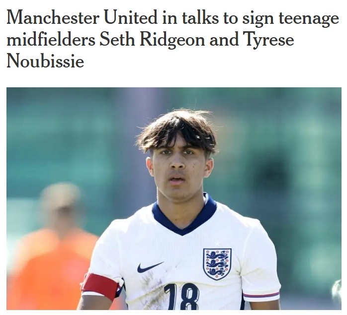 英格兰U17队长塞斯-里吉昂(上图)与即将离开曼城的泰瑞斯-努比西正在考虑曼联的邀约,两人均被视为英格兰同年龄段最出色的球员。由曼联青训招募主管卢克-费多伦科和青训学院总监尼克-考克斯主导的这次行动,标志着俱乐部重启引进英国青训顶尖天才的计划。