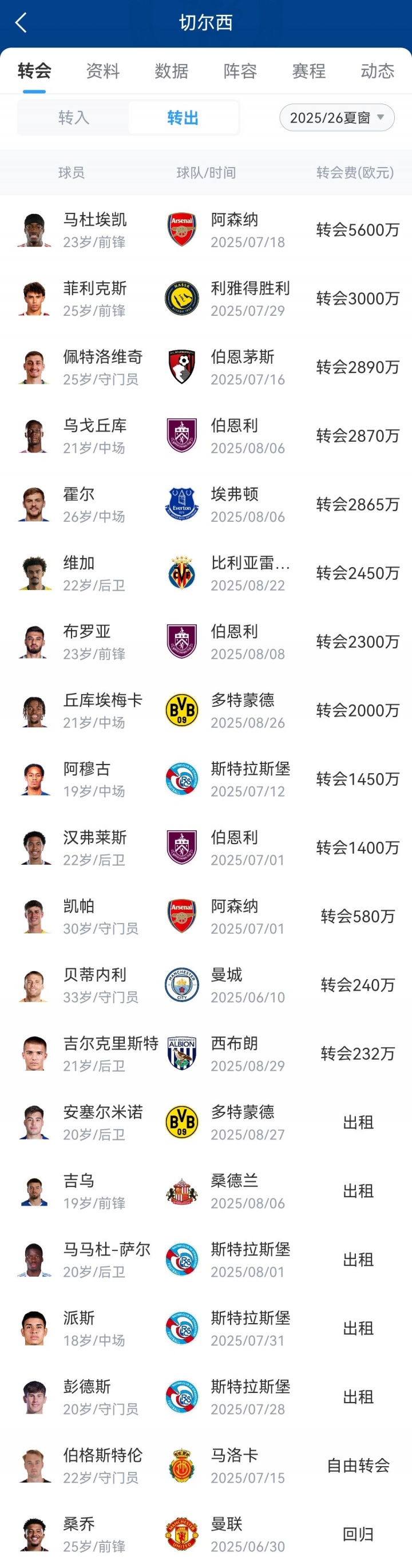 在此之前,切尔西已经完成了出售马杜埃凯、菲利克斯在内的13名球员,同时有多位小将租借离队,据德转统计已创造了约2.8亿欧元的收入。此外,他们向米兰卖出恩昆库的交易也已经达成协议,接近官宣。